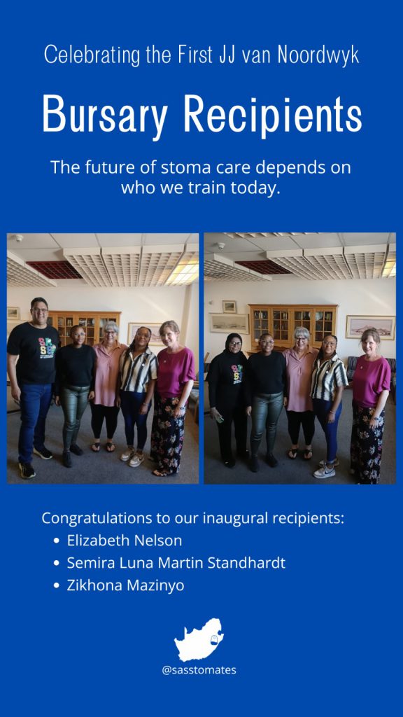 SASS is proud to officially announce and celebrate the first recipients of the Jolanda Janse van Noordwyk (JJ van Noordwyk) Stoma Nurse Bursary Fund — a milestone moment in our commitment to securing the future of specialised stoma care in South Africa.